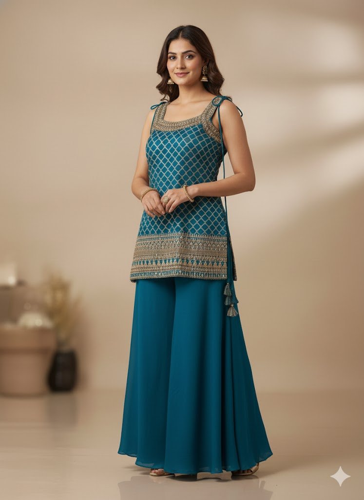 The Crimson & Ivory Sharara Ensemble: A Tale of Royal Grandeur